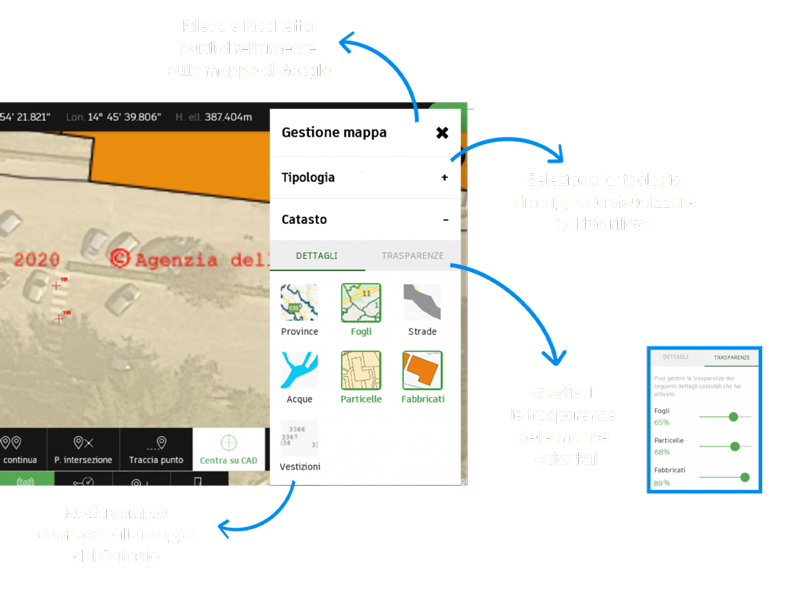 GESTISCI DETTAGLI E TRASPARENZE DELLE MAPPE CATASTALI