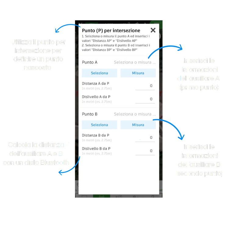 Calcola in automatico nuovi punti a partire da quelli già noti inserendo le distanze manualmente o con l'ausilio di un disto Bluetooth.